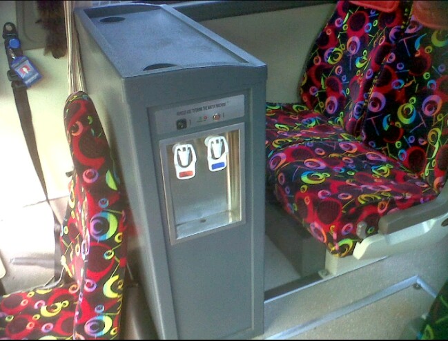 Jarang-jarang ada bus yang menyediakan air minum yang ditampung di dispenser. Biasanya satu lembar tiket bus hanya bisa ditukarkan dengan satu atau dua gelas atau botol minuman saja. Tapi di PO Surya Bali kelas eksekutif, kamu bisa merasakan hangatnya teh, kopi, atau mi instan dalam kemasan kapan saja berkat adanya air panas dari dispenser. Tapi sebaiknya nikmati di tempat tertutup di bagian lain dalam bus. Smoking room, misalnya. Kasihan kalau satu bus jadi ikutan lapar gara-gara aroma seduhan mi instan kamu.