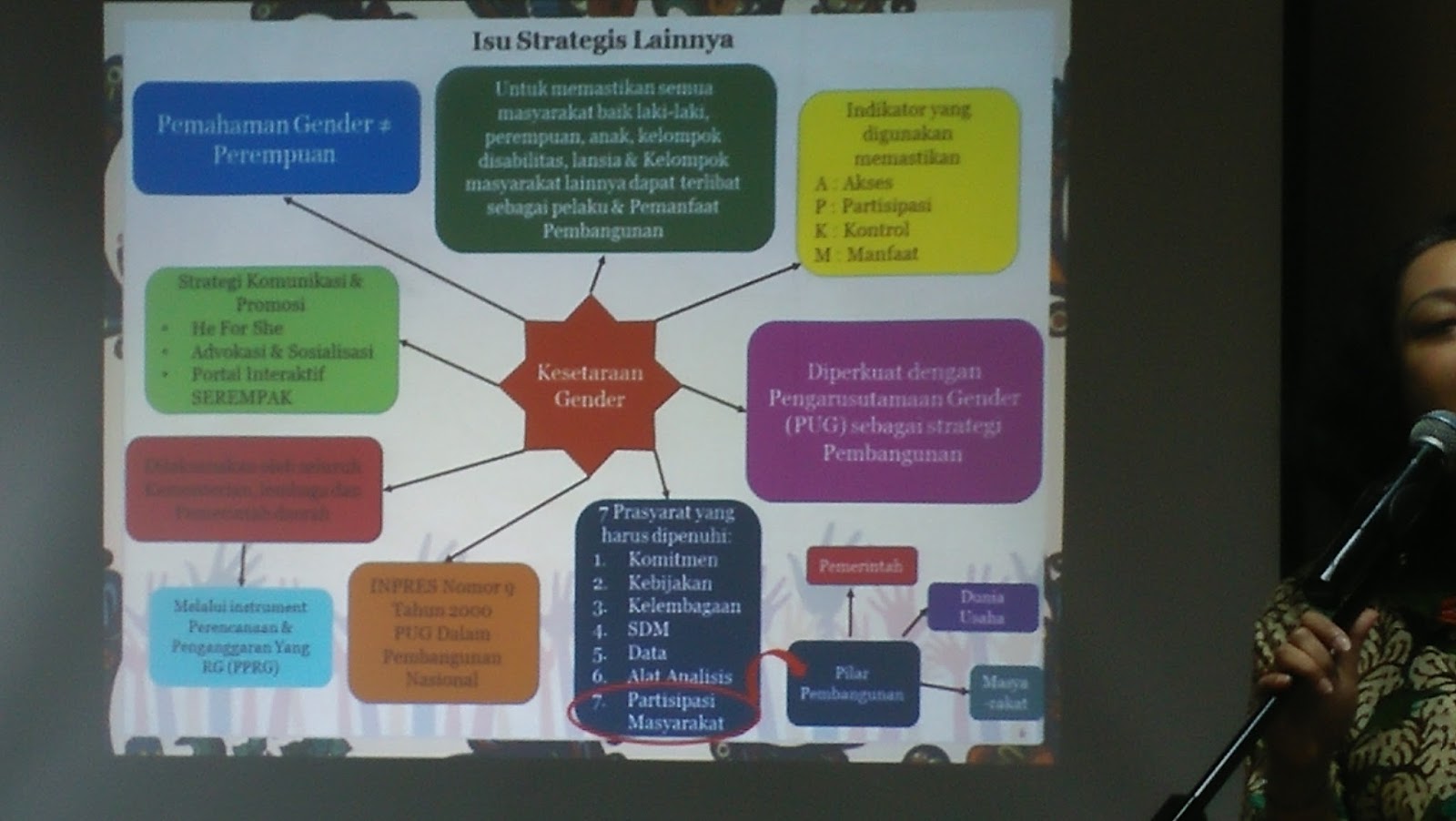 Bu Susianawati menegaskan bahwa tidak ada perbedaan kedudukan antara perempuan dan laki-laki. Beliau juga mengatakan bahwa gender dapat berubah dari waktu ke waktu karena adanya perkembangan yang mempengaruhi nilai-nilai dan norma masyarakat tersebut. Adapun kesetaraan gender adalah kesamaan kondisi dan kedudukan bagi laki-laki dan perempuan untuk memperoleh kesempatan dan hak-haknya sebagai manusia, agar mampu berperan dan berpartisipasi aktif dalam kegiatan ekonomi, hukum, politik, sosial budaya, pendidikan, pertahanan dan keamanan nasional (hankamnas) serta kesamaan dalam menikmati hasil pembangunan tanpa adanya perbedaan sedikitpun. Terwujudnya kesetaraan gender ditandai dengan tidak adanya diskriminasi antara perempuan dan laki-laki sehingga mereka memiliki akses dan kesempatan berpartisipasi yang setara dan adil. Perempuan dapat melakukan profesi seperti yang dilakukan oleh laki-laki namun tetap sesuai kodratnya.