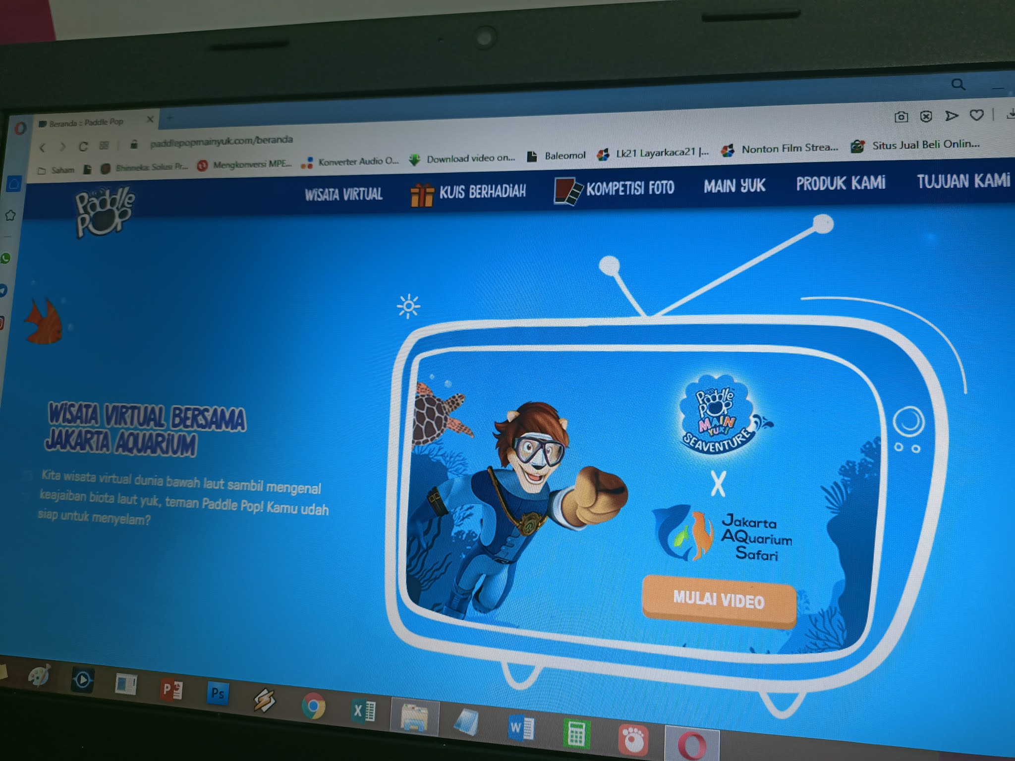 Awalnya saya sempat khawatir anak saya tidak tertarik dengan wisata virtual ini karena ini adalah pertamakalinya mereka mengikuti wisata virtual. Pasti sangat berbeda sensasinya antara wisata langsung (offline/datang ke tempat wisata) dengan wisata virtual. Alhamdulillahnya kecemasan saya tidak terjadi. Kedua anak saya sangat menikmati keseruan yang disuguhkan oleh Paddle Pop Seaventure dan Jakarta Aquarium. Begitu masuk websitenya, Si Dede langsung mengklik “wisata virtual”. Wisata virtual mengajak kita untuk menikmati keindahan alam bawah laut.