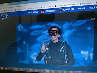 “Bun, Kakak pemandunya masa pake baju selam loh..ihh kayak beneran deh. Tuh lagi ngingetin supaya melakukan pemanasan dulu sebelum berenang dan menyelam. Ikutin ah gerakannya”, cerocos Si Dede sambil pandangan matanya tak berkedip sedikitpun menatap layar laptop. Si Dede yang aslinya emang hobi banget berenang dan main air ini, sangat antusias menyimak Kakak pemandu. Banyak informasi seputar dunia bawah laut yang disampaikan oleh Kakak pemandu. Diantaranya adalah tentang kenapa kalau menyelam perlu menggunakan tabung oksigen. Kakak pemandu menjelaskan bahwa tabung oksigen diperlukan karena kita manusia bernafas dengan paru-paru, berbeda dengan ikan yang bernafas menggunakan insang. Ikan bisa bernafas di dalam air sedangkan manusia tidak karena memerlukan oksigen. Karena itulah pada saat menyelam diperlukan tabung oksigen agar manusia tetap dapat bernafas dan menghirup oksigen.