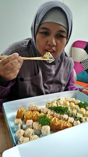 Aku nggak dibagiin nih, Mak? Sushinya kliatan enak banget dan lezat euy. Mau dong nyobain atuuuuuu