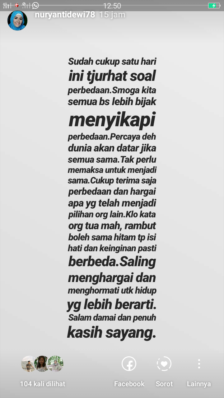 Sejak Indonesia berdiri, perbedaan dan keberagaman itu sudah ada dan itulah yang menjadi kekuatan bagi bangsa ini. Namun mengapa setelah sekian puluh tahun merdeka, keberagaman dan perbedaan itu diusik. Diusik oleh pesta demokrasi yang lima tahun sekali. Padahal seharusnya pesta demokrasi disambut dengan suka cita. Bukan dengan saling klaim bahwa pilihannya adalah yang terbaik. Lelah aku tuh. Lelah dan muak dengan keadaan ini. Muak ketika ada orang  atau golongan yang merasa lebih baik dari yang lainnya. Muak ketika pilihan politik diributkan dan mengusir kedamaian pergi dari bumi Indonesia.