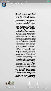Saya ingin sekali berkata pada teman-teman yang berbeda pilihan bahwa meski kita memilih pemimpin yang berbeda tapi kita masih tetap bisa saling menyayangi karena inilah salah satu bentuk rasa cinta kita pada bumi pertiwi. Karena kita adalah Indonesia.