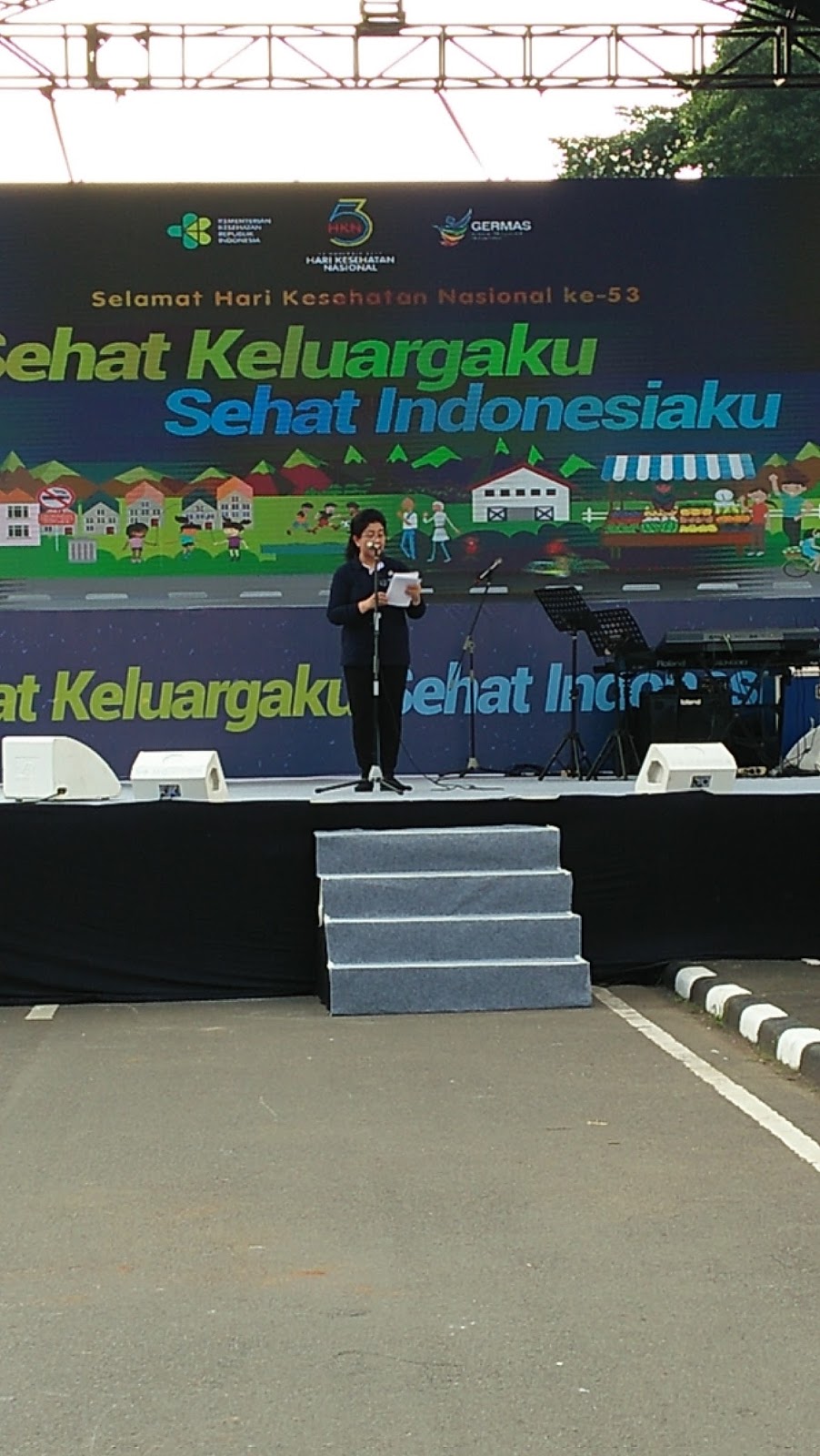 Setelah acara senam GERMAS selesai, acara kemudian dilanjutkan ke acara puncak perayaan HKN ke-53 yaitu sambutan yang disampaikan oleh Bu MenKes dan Pak WaPres yang langsung dilanjutkan dengan acara teleconference ke 6 kota di Indonesia. Tujuh kota tersebut juga serentak melaksanakan acara CFD HKN 53. Bu MenKes dalam sambutannya mengingatkan untuk selalu menjaga kesehatan dan kebugaran tubuh. Apalagi saat ini di Indonesia terjadi pergeseran komposisi penderita jenis penyakit. Sebelumnya penderita penyakit menular lebih banyak daripada penderita penyakit tidak menular. Tapi sekarang yang terjadi adalah sebaliknya. Penderita penyakit tidak menular lebih banyak daripada penderita penyakit menular. Kondisi tersebut membuat beban pemerintah untuk membiayai kesehatan rakyatnya semakin meningkat. Karena biaya pengobatan penyakit tidak menular lebih tinggi daripada biaya pengobatan penyakit menular. Oleh sebab itu, Kementrian Kesehatan melalui GERMAS berupaya untuk mengajak masyarakat untuk menerapkan pola hidup sehat.