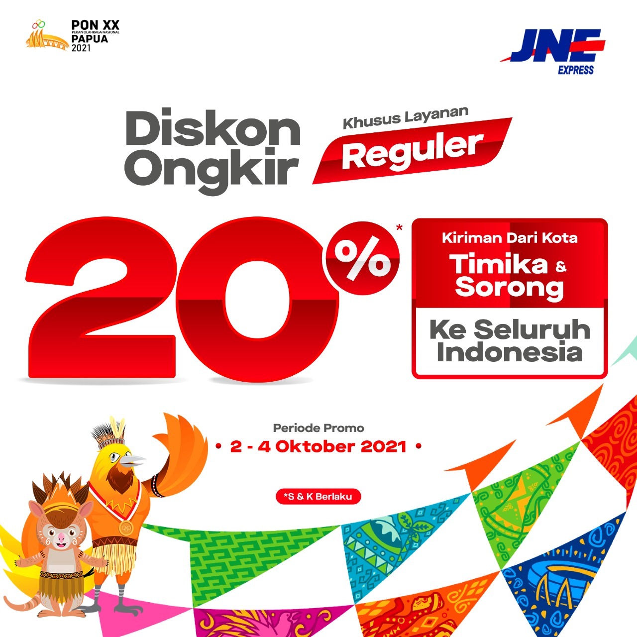 JNE menggelar program promo ongkir karena adanya kemungkinan para atlet dan tim official akan melakukan pengiriman produk-produk atau souvenir khas Papua terutama kota Jayapura ke daerah asal mereka. Terlebih lagi Jayapura sudah lama dikenal sebagai penghasil kerajinan yang unik dan ikonik. Hal ini akan menguntungkan bukan hanya untuk JNE tapi juga bagi pelaku UMKM lokal. Seperti tagline “Connecting Happines”, JNE berupaya mengantarkan kebahagiaan untuk konsumennya terutama yang berada di kota-kota tempat berlangsungnya PON XX Papua.