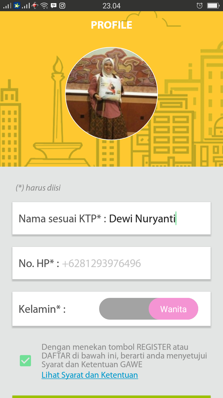 Setelah masuk ke aplikasinya, Kalian harus melengkapi data diri secara lengkap seperti nama yang harus sesuai dengan KTP, foto diri dan foto KTP. Aplikasi baru dapat dugunakan setelah dua hari karena dua hari itulah waktu yang diperlukan oleh admin Gawe untuk memverifikasi data yang masuk. Aplikasi ini bukan hanya berguna untuk si pencari kerja saja tapi juga untuk orang yang mencari pekerja harian atau part time ini.