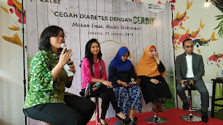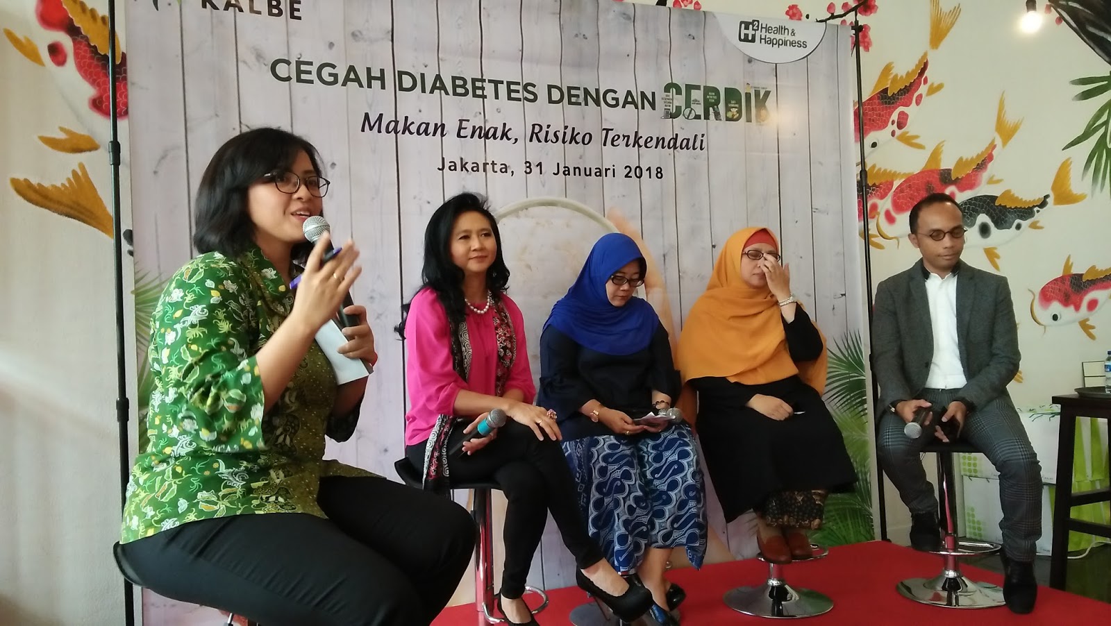 Hadir dalam diskusi kesehatan tersebut yaitu drg. Dyah Erti Mustikawati, MPH (Kepala Subdirektorat Diabetes Melitus dan Gangguan Metabolisme, Direktorat Pencegahan dan Pengendalian Penyakit Tidak Menular KeMenKes RI), Dr. Didah Nur Faridah (Kepala Pengembangan Layanan Analisis Pangan IPB), dr.Cindiawaty Josito, MARS, MS, SpGK (ahli gizi klinis) dan Widiyatmo (Deputy Director Corporate Business Development Pt. Kalbe Farma Tbk.