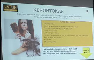 Hair Beauty Dating With Natur kali ini diawali dengan penjelasan Mba Clara dari pihak Natur mengenai rangkaian produk perawatan rambut dari Natur. Mba Clara mengatakan bahwa rambut indah dan sehat merupakan goal atau keinginan wanita di dunia. Namun seiring dengan aktivitas yang dilakukan dan berbagai faktor seperti sinar matahari, tingkat polusi, usia, stress, muncullah masalah pada rambut seperti rambut mudah patah, rontok dan ketombe.