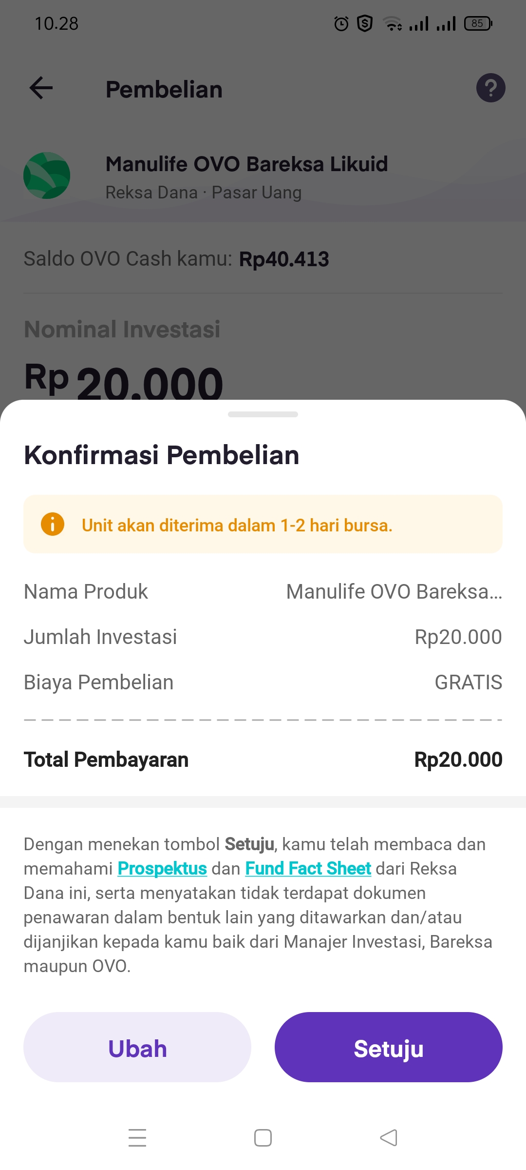 -Pembelian produk yang mudah dengan OVO Cash Memulai investasi dengan hanya Rp 10,000 saja. Terjangkau banget,kan?!;