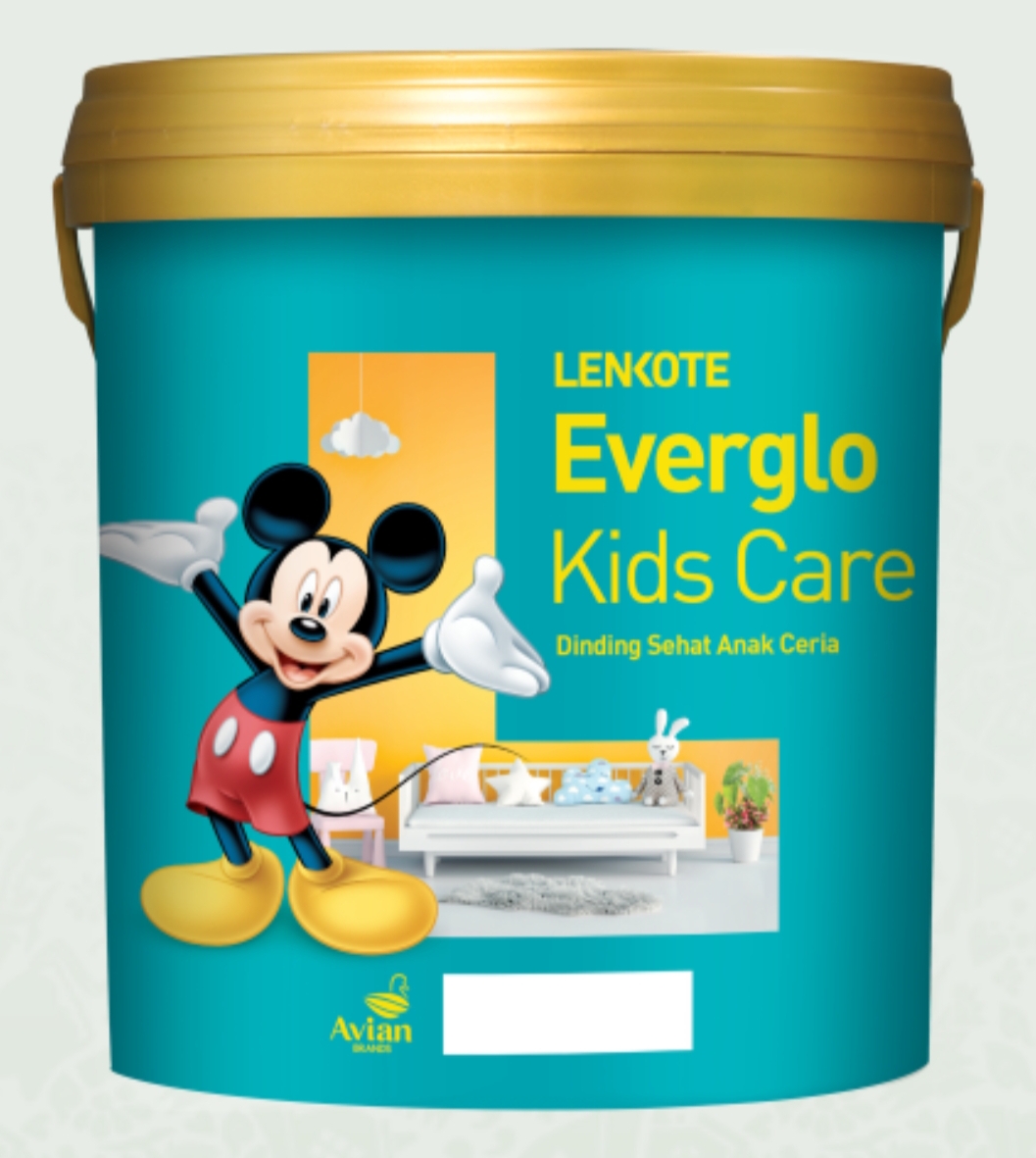 Cat seri Disney jenis ini akan membantu menciptakan ruang kamar anak tampak mewah dan sehat. Keinginan untuk memberikan kamar anak yang terjaga keamanan dan kebersihannya serta mudah dibersihkan dapat terwujud dengan cat tembok Everglo Kids Care. Cat tembok premium ini mudah untuk dibersihkan dan tersedia dalam 888 pilihan warna dengan formula anti bakteri, tahan sikat atau gosokan dan kotoran tidak mudah menempel. Hasil akhir yang ditampilkan oleh Cat Tembok Everglo Kids Care adalah kilau mewah atau mid sheen, sehingga sangat cocok untuk anak yang sedang aktif-aktifnya menuangkan kreativitas dengan corat-coret dinding. Cocok banget untuk kamar balita. Tapi bisa juga nih untuk kamar Dede karena dia juga sering kepergok sedang menggambar di dinding kamarnya hahahaha;