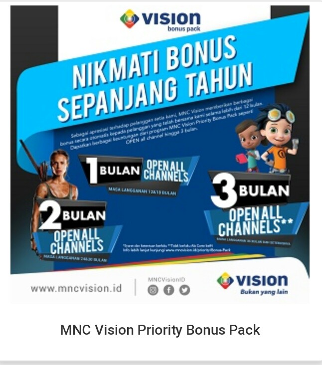 Alhamdulillah ya liburan akhir tahun di rumah ada berbagai tayangan menarik dari MNC Vision. Pengin pasang juga nih biar bisa dapetin banyak promonya.