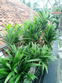Tanaman yang berhasil beradaptasi dengan kejamnya dunia perlotengan adalah lidah buaya, daun pandan, pepaya dalam pot, bunga entah apa namanya (huahahaha..Mamak ngga tahu namanya) dan jambu cristal. Semua tanaman ini hidup dalam pot dan berteman dengan genteng rumah Mamak hahahaha.
