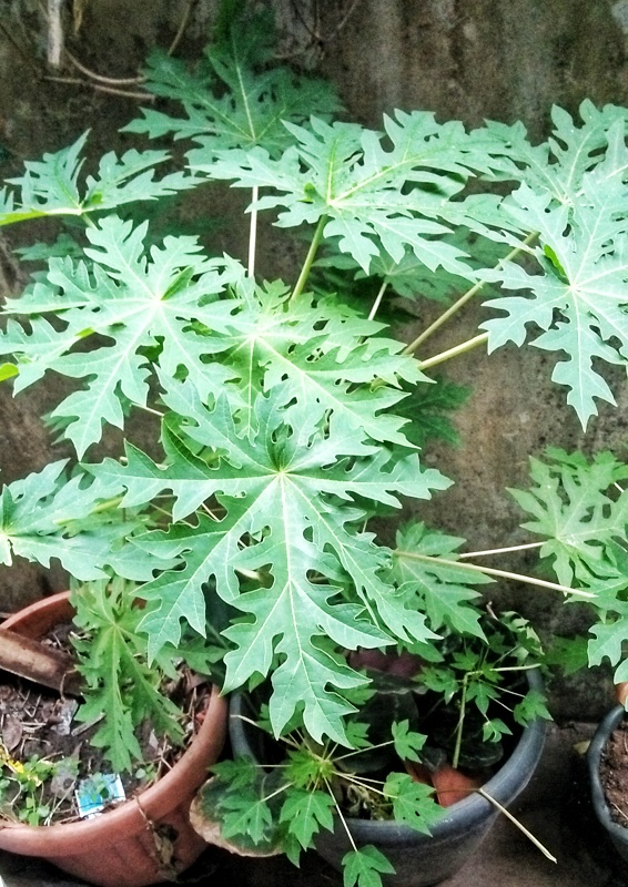 Tanaman yang berhasil beradaptasi dengan kejamnya dunia perlotengan adalah lidah buaya, daun pandan, pepaya dalam pot, bunga entah apa namanya (huahahaha..Mamak ngga tahu namanya) dan jambu cristal. Semua tanaman ini hidup dalam pot dan berteman dengan genteng rumah Mamak hahahaha.