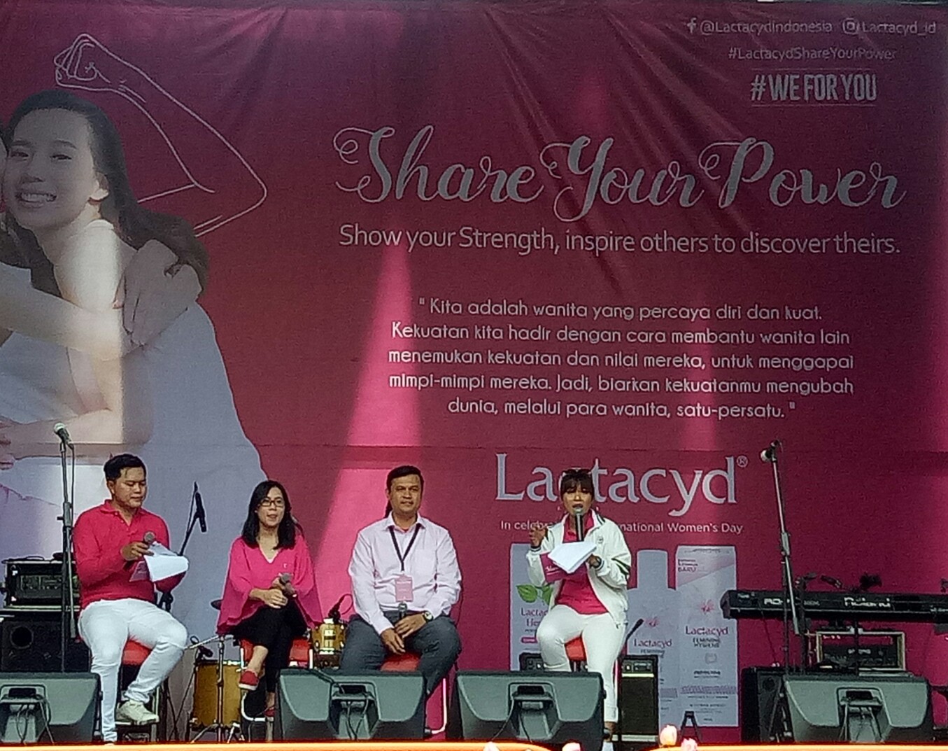 Share Your Power, Show Your Strenght, Inspire others to discover things merupakan kalimat yang menjadi hastag acara tersebut. Setelah dihibur oleh lagu-lagu merdu, para perempuan yang hadir pun diajak untuk menambah wawasan seputar dunia perempuan dan kenal lebih dekat lagi dengan Lactacyd melalui talkshow singkat.