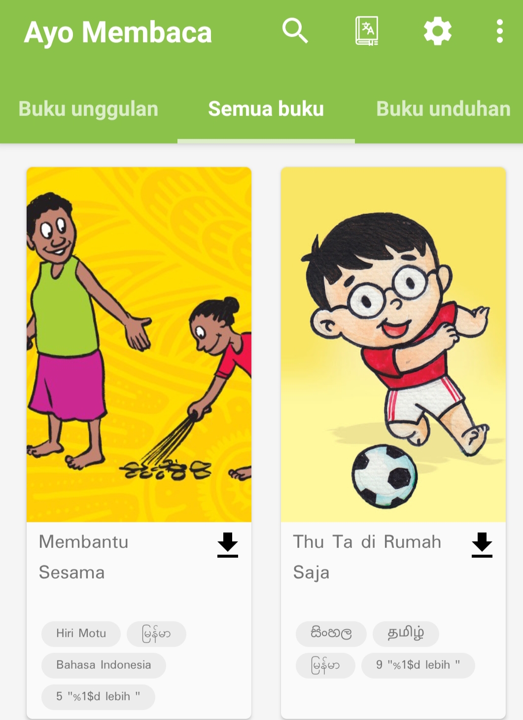 Terkait dengan rendahnya tingkat literasi dan minat baca anak-anak Indonesia, The Asia Foundation mempersembahkan Lets Read Indonesia, sebuah aplikasi perpustakaan digital gratis yang berisi buku bacaan cerita anak. Aplikasi ini dapat didownload secara gratis dan buku cerita anak yang ada didalamnya dapat diunduh dan disebarluaskan secara gratis tapi tidak boleh untuk diperjualbelikan.