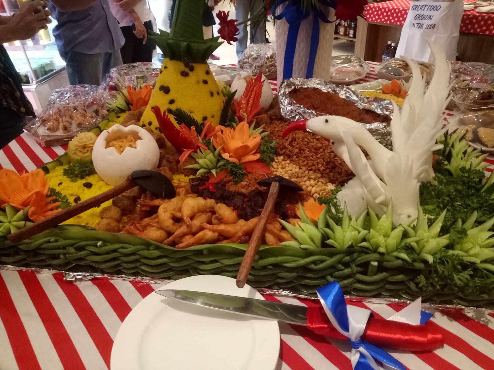 Sejujurnya saya cukup terkesima dengan kehadiran nasi tumpeng dalam perayaan 70 tahun hubungan Indonesia-Amerika ini. Ngga nyangka saja ternyata dalam acara yang melibatkan negara lain pun, nasi tumpeng disajikan sebagai makanan utama dan pihak kedutaan Amerika pun menyambut antusias nasi tumpeng ini. Sebagai orang Indonesia sudah sepantasnya saya merasa bangga dengan kekayaan budaya bangsa saya sendiri.