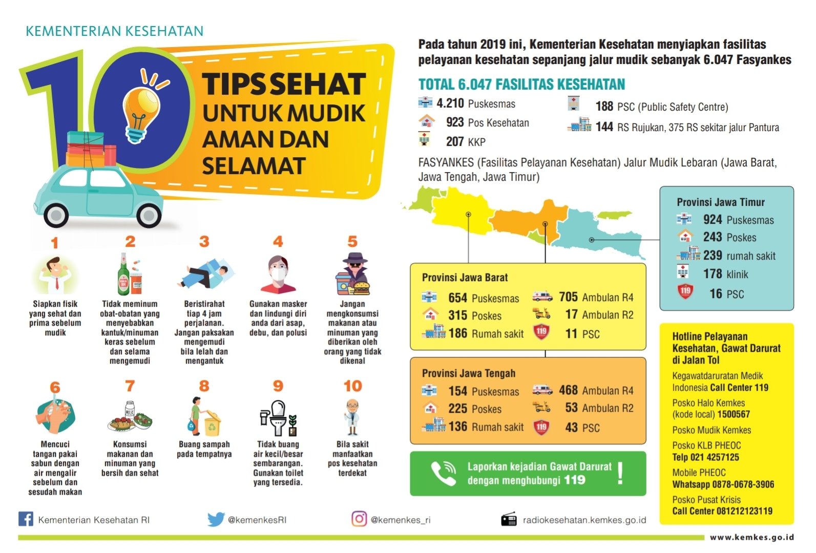 Lebih lanjut lagi, Bu Nila menjelaskan bahwa sepanjang jalur mudik 2019 ini tersedia 6047 titik pos kesehatan yang khusus diperuntukan untuk para pemudik. Di posko kesehatan tersebut, para pemudik akan memperoleh pelayanan kesehatan gratis dan dipersilahkan untuk istirahat sebelum melanjutkan perjalanan. Disediakan juga pemijatan gratis loh.
