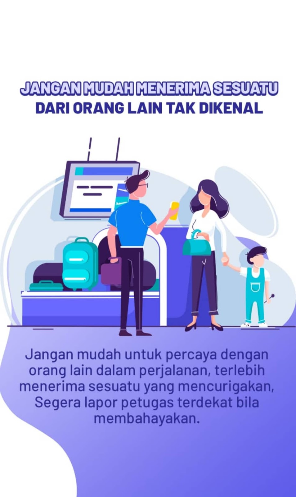 15. Jika membawa makanan kering/minuman kemasan pastikan membelinya di toko resmi untuk menghindari penggunaan bahan yang berbahaya bagi kesehatan. Jangan lupa untuk melihat tanggal kadaluarsa dan komposisi makanan atau minuman kemasan. Jangan memakan dan meminum yang mengandung pemanis buatan dan bahan pengawet berbahaya;