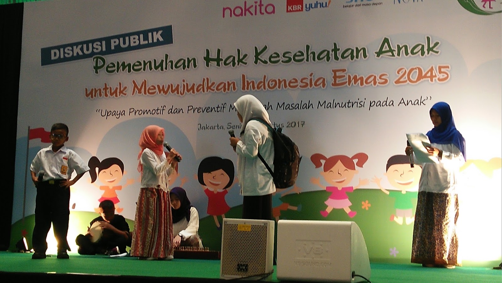 Berkaitan dengan pemenuhan gizi tak seimbang pada anak, kemarin tanggal 7-8-2017, saya menghadiri diskusi publik Hari Anak Nasional 2017 bertempat di Aula Gedung A Kementrian Pendidikan Dan Kebudayaan, Jakarta. Diskusi Publik yang bertema tentang pemenuhan hak kesehatan anak untuk mewujudkan Indonesia emas 2045.