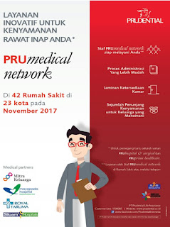 Ditahun 2017 ini, tepatnya bulan November yang lalu, Prudential menyempurnakan layanan rawat inap untuk para nasabahnya dengan mengeluarkan PRU Medical Network. PRU Medical Network merupakan layanan inovatif untuk kenyamanan rawat inap. PRU Medical Network merupakan jaringan rumah sakit yang telah menjadi rekanan dari Prudential dan menjamin kenyamanan layanan rumah sakit untuk para nasabahnya (peserta asuransi kesehatan Prudential). Jaringan rumah sakit tersebut tersedia di 42 rumah sakit rekanan yang tersebar di 23 kota se-Indonesia. Ada 4 medical partners Prudential, yaitu Mitra Keluarga, Mayapada Hospital, Royal Taruma dan Siloam Hospital.