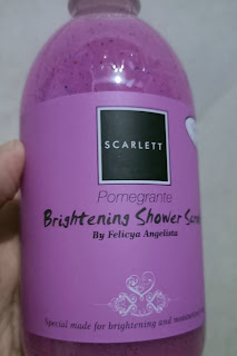 Scarlett Whithening Pomegrante Brightening Shower Scrub memiliki kemasan yang menarik. Terbuat dari botol plastik bening tebal dan menggembung yang memperlihatkan isinya, buliran scrub berwarna ungu dengan bintik-bintik biru dan merah. Dengan tutup fliptop berwarna putih ngga bikin mudah tumpah sehingga aman jika dimasukan dalam tas. Walau menurut saya agak besar ukuran kemasannya jika dibawa travelling tapi shower scrub ini simple dan aman dibawa kemana-mana. Pada kemasan Pomegrante Brightening Shower Scrub terdapat sticker yg berisi tentang informasi produk dan cara penggunaannya. Mempermudah pengguna seperti saya, yang sebelumnya belum pernah mencoba produk ini, memperoleh informasi seputar kandungan yang terdapat dalam shower scrub tersebut.