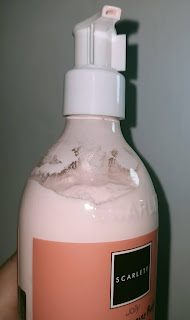 Scarlett Whitening Body Lotion memiliki kemasan botol bening hampir sama dengan kemasan shower scrub tapi botol body lotion ini dilengkapi dengan pump dan tutup lock-unlock. Tutup ini memastikan produk tetap aman meski disimpan dalam tas dan dibawa ke mana pun si pemilik pergi. Warna lotion pink muda dengan wangi Jolly seperti wangi Yves Saint Laurent Black Opium Eau De Parfume. Aselik wangi banget.