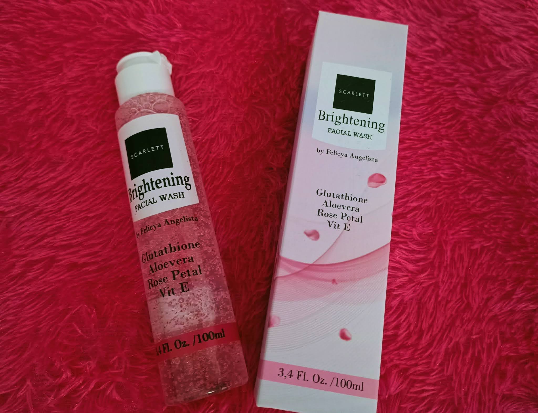 Scarlett Whitening Brightening Facial Wash merupakan pembersih muka yang lembut dengan wangi menyegarkan. Saya suka dengan butiran halusnya. Scarlett Whitening Brightening Facial Wash berisi 100gr yang dikemas dalam botol flip panjang. Mudah udah dibuka dan ditutup tapi tidak mudah tumpah atau berceceran. Scarlett Brightening Facial Wash mengandung glutathione, aloevera (lidah buaya), rose petal dan vitamin E. Pertamakali menggunakan facial wash ini, saya merasa kulit wajah terasa lebih lembab.
