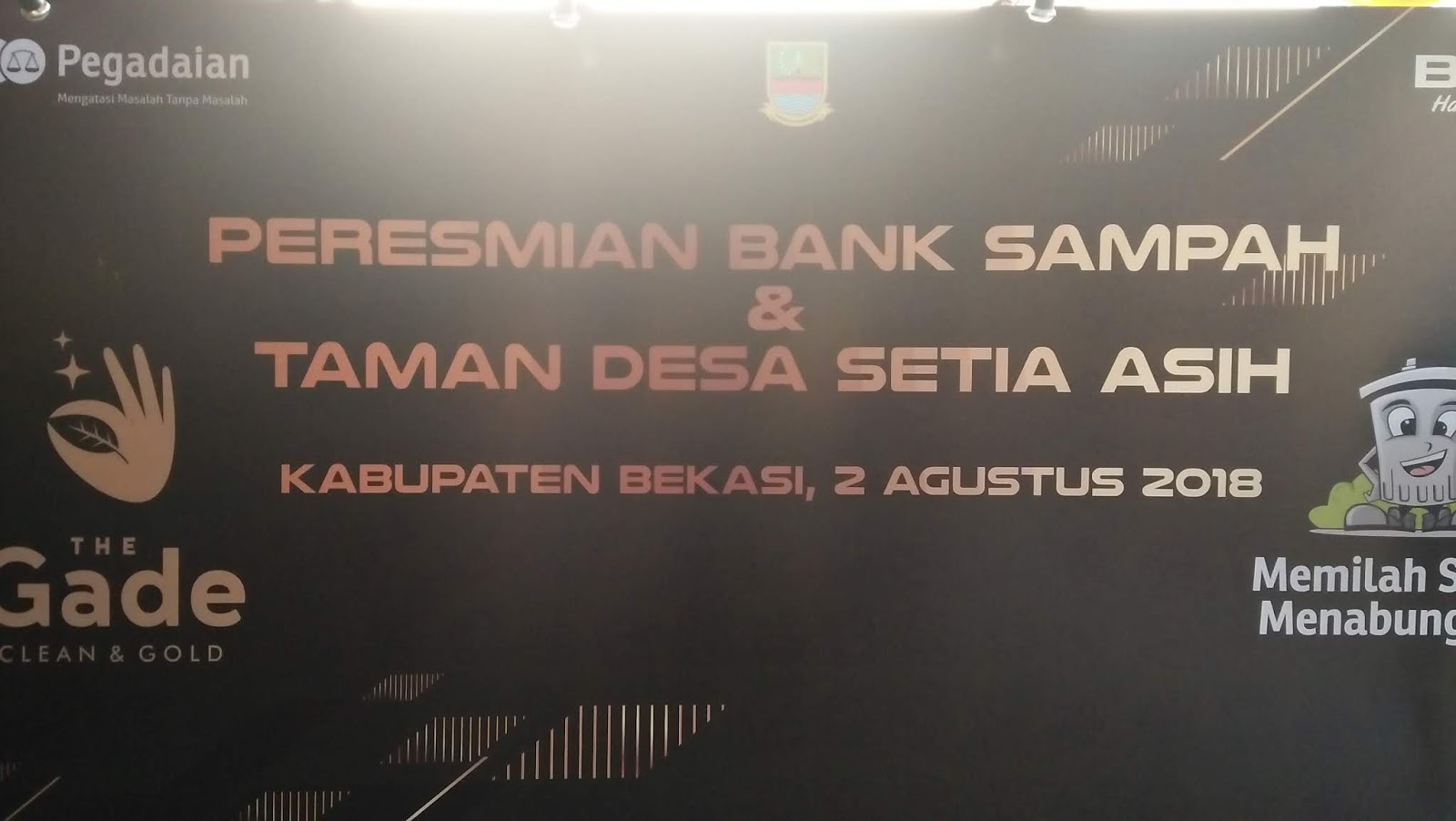 Peresmian Bank Sampah dan Taman Desa Setia Asih ini merupakan salah satu program CSR dari PT. Pegadaian. Dirut Pegadaian, Direktur Utama Pegadaian, Bapak Sunarso menjelaskan bahwa tujuan pendirian Bank Sampah adalah untuk meningkatkan kesehatan dan kesejahteraan hidup masyarakat, mengurangi dampak sampah lingkungan, sekaligus meningkatkan sumber penghidupan. Masyarakat diharapkan tak ada lagi yang membuang sampah sembarangan dan tidak pada tempatnya. Di sekitar desa Setia Asih, Taruma Jaya tidak lagi terlihat sampah yang berceceran dan bikin mata sepet. Sampah dikumpulkan di Bank Sampah untuk kemudian diolah dan dikelola menjadi barang yang berguna. Sampah-sampah yang dikumpulkan dan memiliki nilai jual akan dihitung dan uangnya akan dijadikan dalam bentuk tabungan yang kemudian dikonversi ke nilai emas. Masyarakat Setia Asih yang telah memiliki saldo tabungan minimal 50 rb, saldo tabungannya tersebut akan dikonversi ke emas.