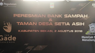 Pernah ngga terlintas dalam pikiran saat melihat tumpukan sampah di tong sampah yang ada di rumah jika sampah-sampah tersebut bisa menjelma menjadi emas? Hah sampah jadi emas? Yups, hal ini bukan cuma khayalan saya saja kog. Pegadaian memiliki program CSR yang mengubah sampah-sampah menjadi tabungan emas. Lah kog gimana caranya? Pegadaian membeli sampah-sampah yang dikumpulkan oleh masyarakat desa binaannya dan hasil penjualan sampah masyarakat tersebut dikonversi ke dalam bentuk tabungan emas. Salah satu desa binaan Pegadaian adalah Desa Setia Asih, Taruma Jaya, Bekasi. Pegadaian belum lama ini telah meresmikan Bank Sampah dan Taman Desa Setia Asih, Tarumajaya Bekasi.