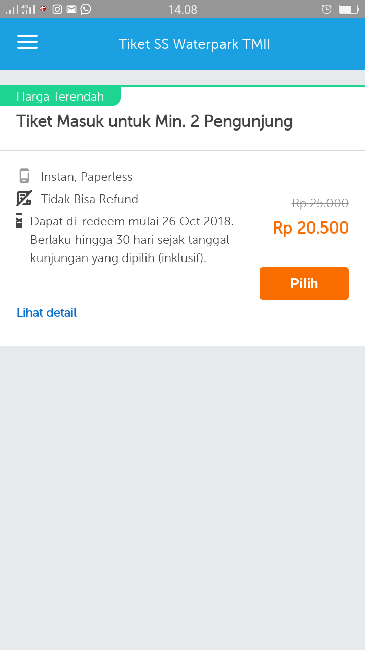Pilihan tempat wisata mamak akhirnya jatuh pada wahana air yang belum lama hadir di kawasan Taman Mini Indonesia Indah, Sendang Sedoyo (SS) Park. Beruntung banget nih karena pas mamak mau booking tiket masuk SS Park TMII sedang ada promo potongan harga. Dari harga Rp. 25.000,- menjadi Rp.20.500,-. Tuh lumayan banget kan? Benerkan kata mamak kalau urusan booking dan beli tiket masuk tempat wisata, tiket transportasi, sampai hotel ya cuma Traveloka jagonya.