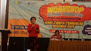Upaya mengendalikan penyakit tidak menular dan menurunkan jumlah perokok, juga dapat dilakukan dengan memberikan edukasi mengenai bahaya merokok. Edukasi tersebut dapat dilakukan melalui media sosial dengan menggunakan tekhnik story telling. Menurut Mas B. Hidayat, narasumber terakhir pada workshop pertama menyatakan bahwa story telling merupakan cara paling ampuh untuk meningkatkan kualitas konten yang kita miliki.
