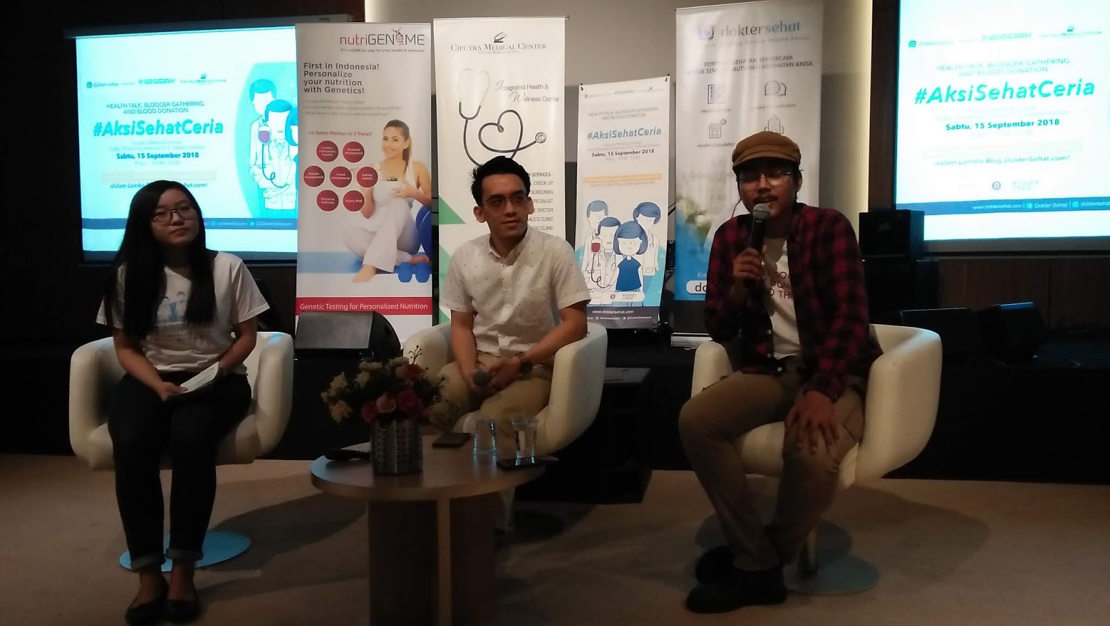 Salah satu acara #AksiSehatCeria adalah talkshow seputar pola makan sehat dan pentingnya memenuhi kebutuhan kantong darah di Indonesia. Talkshow kesehatan ini menghadirkan dua pembicara yaitu dr.Christopher Andrian, M.Gizi, Sp.GK selaku Clinical Nutrition Specialist Ciputra Medical Center dan Faisal Nur Hidayat selaku Koordinator Divisi Edukasi Blood4lifeID.