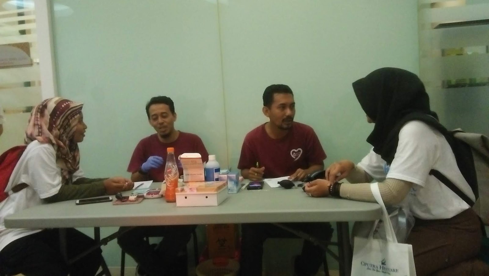 Setelah acara talkshow selesai, #AksiSehatCeria dilanjutkan dengan acara donor darah yang diikuti oleh peserta umum dan blogger. Tadinya mamak berharap dapat ikut mendonorkan darah mamak. Namun sayang, kondisi kurang fit karena diare membuat mamak ditolak jadi pendonor *lap airmata, sedih xixixi. Donor darah dipercaya dapat membuat kondisi badan menjadi lebih sehat. Selain itu, dengan rutin donor darah, kita dapat membantu hidup saudara kita yang memerlukan. Sebelum donor darah, calon pendonor diwajibkan mengisi form dan diperiksa kesehatannya lebih dulu untuk memastikan bahwa tubuhnya cukup sehat untuk melakukan donor darah.